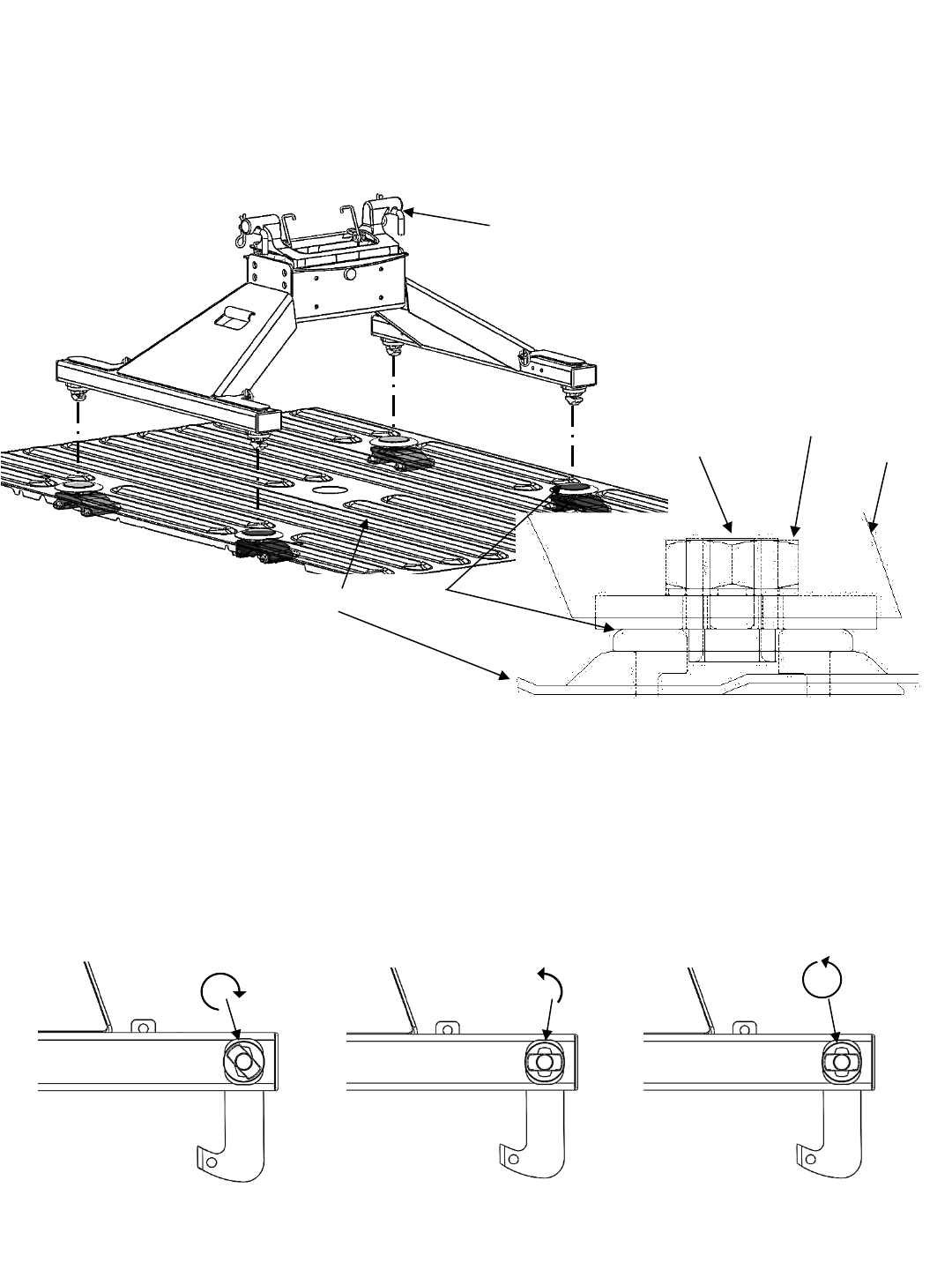 (turned inward or outward) to drop hitch into pucks. Adjustments to the anchor bushings may be necessary for proper