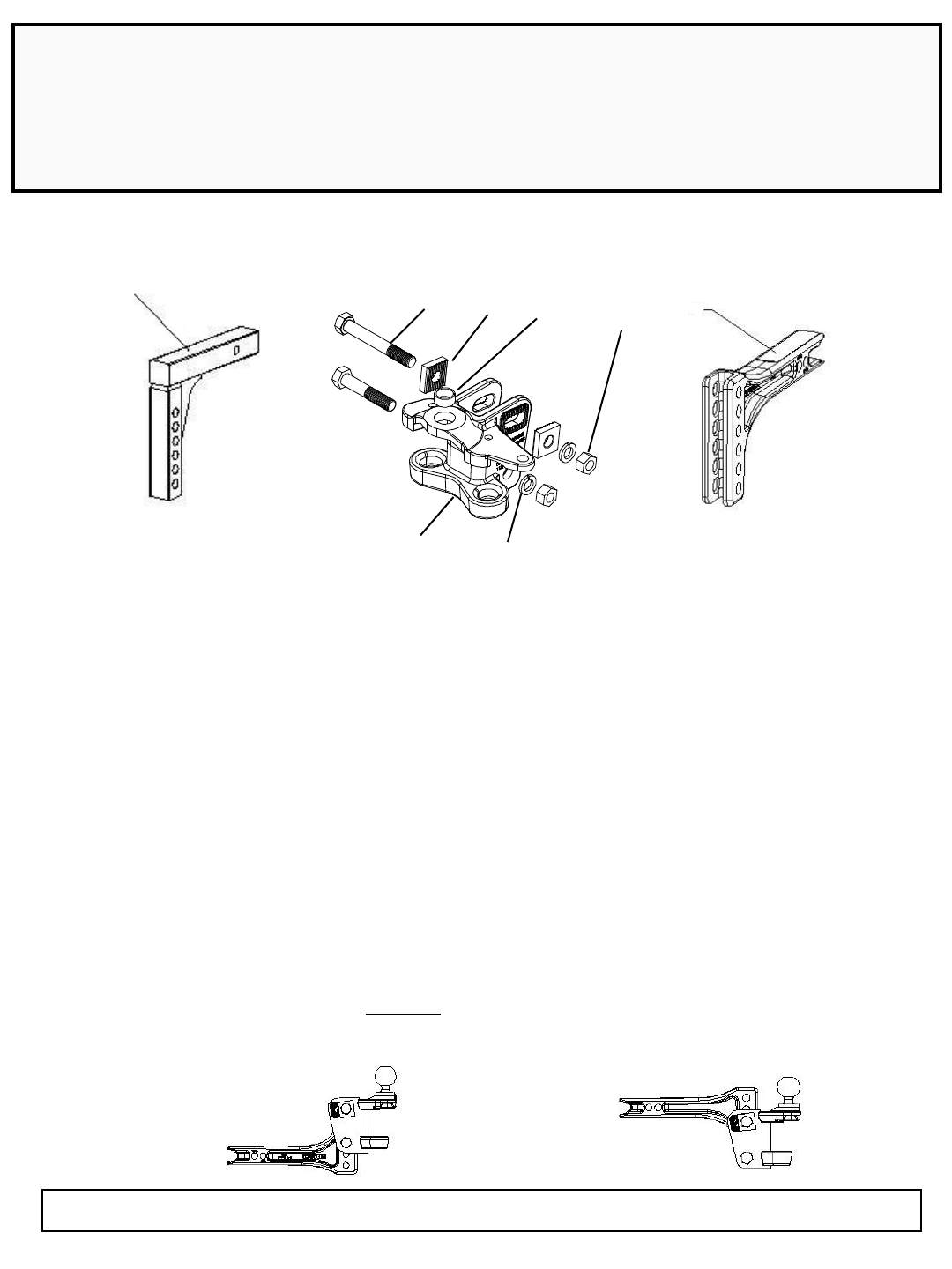 réduire le diamètre du trou dans la monture de boule (G) à 1 po). Toujours utiliser une rondelle frein et la placer à la suite de