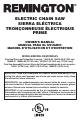 ® ELECTRIC CHAIN SAW SIERRA ELÉCTRICA TRONÇONNEUSE ÉLECTRIQUE PRIME OWNER’S MANUAL MANUAL PARA EL USUARIO MANUEL D’UTILISATION ET D’ENTRETIEN MODELS/MODELOS/MODÈLES Pole Saw/Sierra de Pértiga/Scie à perche : 104316-04, 104316-05 (8"/20.3 cm), 106890-01, 106890-02 (10"/25.4 cm), 108526-01 [8"(20.3 cm), 10"(25.4 cm)] Pole Saw Assembly/Conjunto Sierra de Pértiga/Assemblage de la scie à perche : 104317 (8"/20.3 cm), 106821 (10"/25.4 cm), 106821A (10"/25.