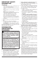 INFORMACIÓN IMPORTANTE DE SEGURIDAD (continuación) • en un estuche o con la funda colocada sobre la barra de guía. Guarde estas instrucciones. Este manual es su guía para utilizar esta sierra eléctrica de manera adecuada y segura. CONSIGNES DE SÉCURITÉ IMPORTANTES 8.