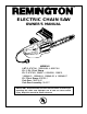 ® ELECTRIC CHAIN SAW OPERATING CHAIN SAW WARNING: Read and understand this owner’s manual before operating this saw. Make certain you read and understand all Safety Warnings, pages 2 and 3. Improper use of this chain saw can cause severe injury or death from fire, electrical shock, or body contact with moving chain, or falling wood. OILING CHAIN 5. Always check oil level before using saw. To oil chain, press oil cap. Do not attempt to operate the oiler while cutting with the saw.
