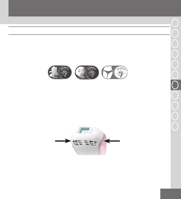 • Behandlingshovedet til kroppen er specielt beregnet til kropsbehåring og kan blitze hvert 3. sekund.