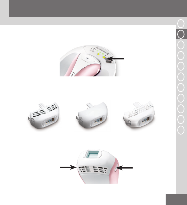 • Ermöglicht die Verwendung nur für geeignete Hauttöne. Dies aktiviert einen Lichtimpuls.