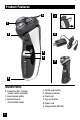 Product Features 3 7 1 2 8 4 5 9 6 SHAVER PARTS 1. PowerFlex 360° Pivoting head & cutter assembly 2. Head release button 3. ActiveContour & PrecisionCut Heads 4 4. On/Off push button 5. Charging indicator 6. Power port 7. Pop-up Trimmer 8. Power cord 9.