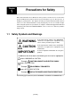 Table of Contents Chapter 1 Precautions for Safety 1.1 Safety Symbols and Meanings ......................................................................................... 9 WARNING Warnings for AC Power Supply ............................................................................. Warnings to Be Taken for This Product ................................................................ Warnings for Installation ........................................................................................