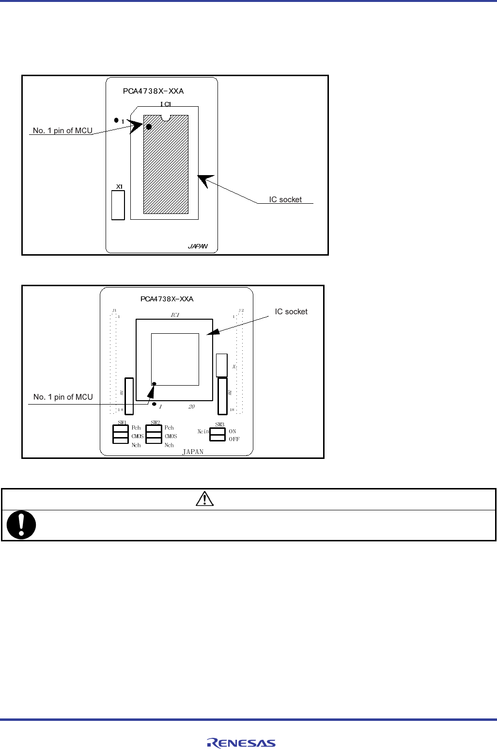 Figure 2.5 Mounting an MCU (adapters with DIP type IC socket)