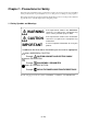 Chapter 1. Precautions for Safety This chapter describes precautions for using this product safely and properly. For precautions of the emulator and emulator debugger, refer to each user's manual. 1.1 Safety Symbols and Meanings ..................................................................................................... 6 WARNING Warnings for AC Power Supply .................................................................................. 7 Warnings to Be Taken for This Product ................