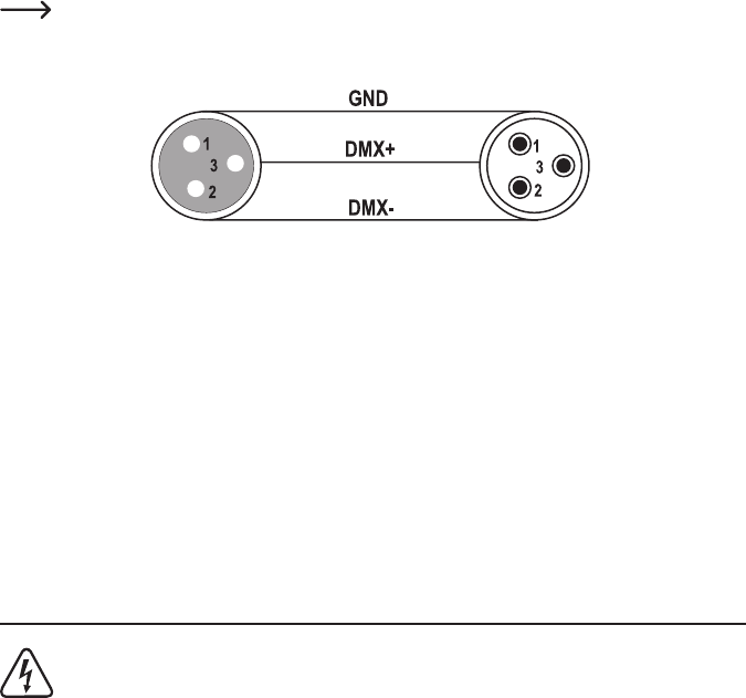 Assegnazione dei pin del connettore DMX: Pin1 = Massa / Pin2 = (-) / Pin3 = (+).