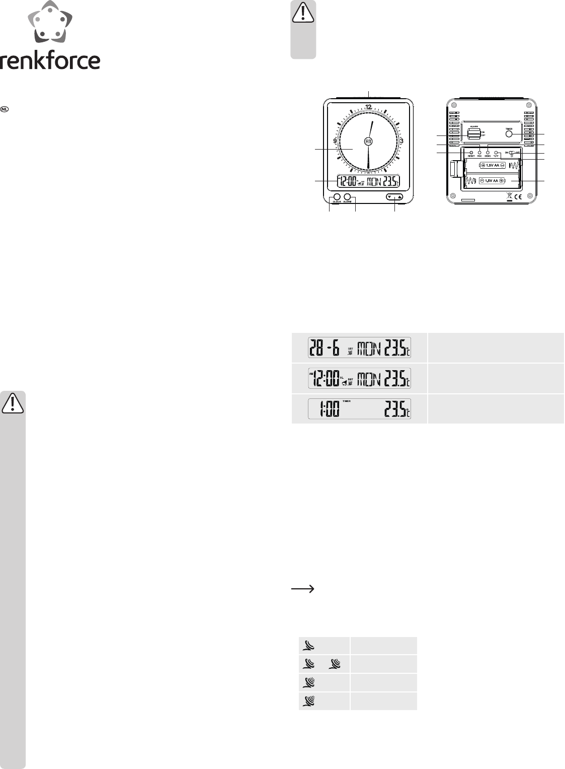 van een wekker en afteltimer. De klok wordt van stroom voorzien door 2 AA-batterijen (niet