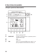 Commuta l’unità del barometro (hPa; inHg; mmHg) B3 BARO B4 SENSOR Avvia la ricerca manuale di un sensore esterno B5 RESET Configura la sveglia a proiezione radiocontrollata sulle impostazioni di fabbrica B6 FORECAST/DEMO FORECAST: il colore della retroilluminazione si adatta alle previsioni meteo; DEMO: cambia il colore in modo permanente B7 PROJECTION ON Attiva o disattiva la proiezione permanente quando il trasformatore è collegato B8 LIGHT ON Attiva o disattiva la retroilluminazione per