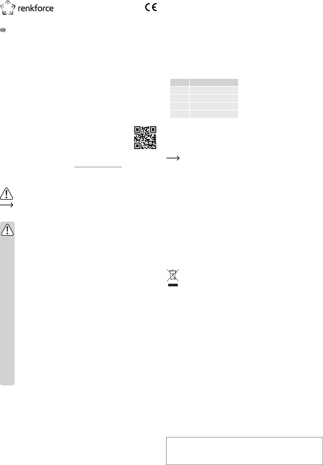 Download the latest operating instructions at www.conrad.com/downloads or scan the QR code