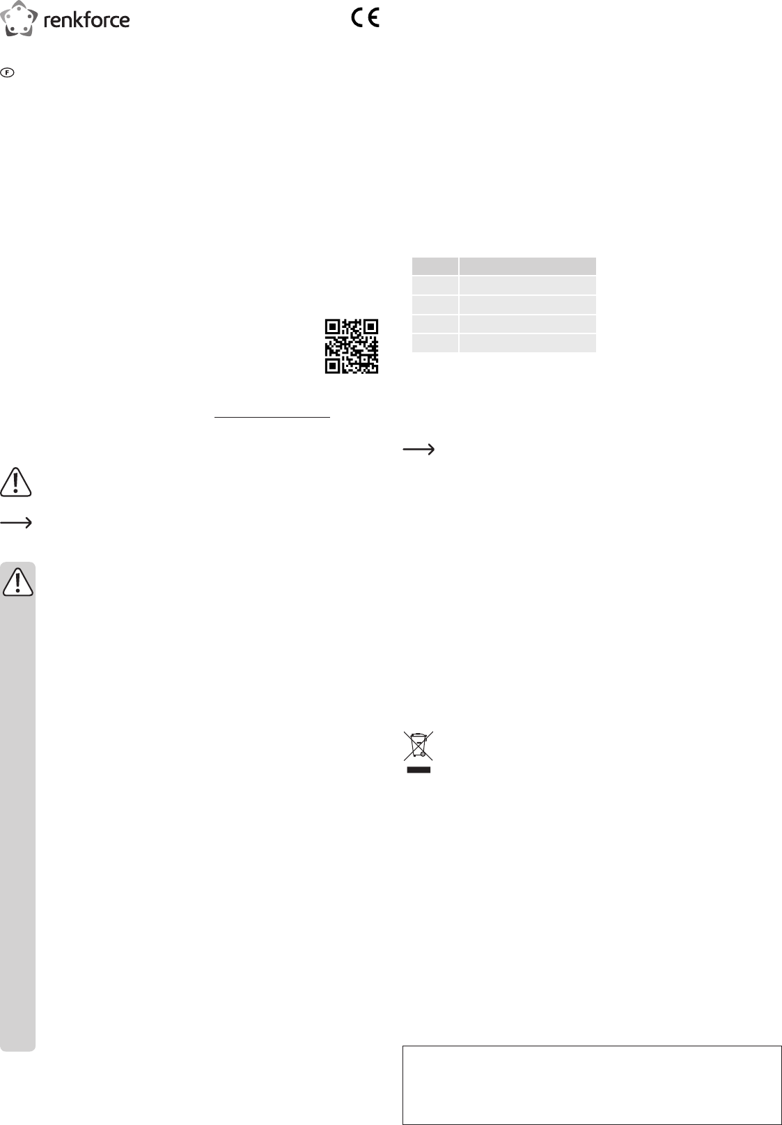 Téléchargez les modes d'emploi actualisés via le lien www.conrad.com/downloads ou scannez