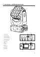 3. Intended Use The moving head is used to generate light effects in light show equipment, party rooms, etc. and is controlled by the built-in controller or an external DMX controller. This product is only approved for connection to 100-240 V/AC, 50/60 Hz alternating current and only for use with an earthed mains socket. The DMX connections must only be connected to suitable DMX controllers or other DMX devices. It is intended for indoor use only. Do not use it outdoors. Contact with moisture, e.g.