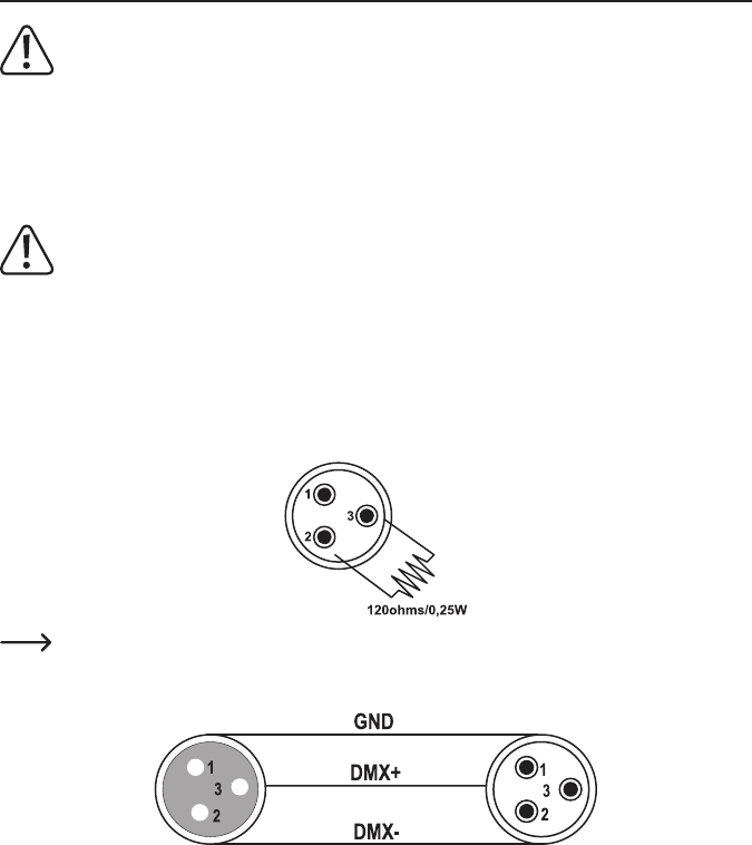 • JeśliefektświetlnymabyćostatnimlubjedynymurządzeniemwłańcuchuDMX,należypodłączyćdogniazda