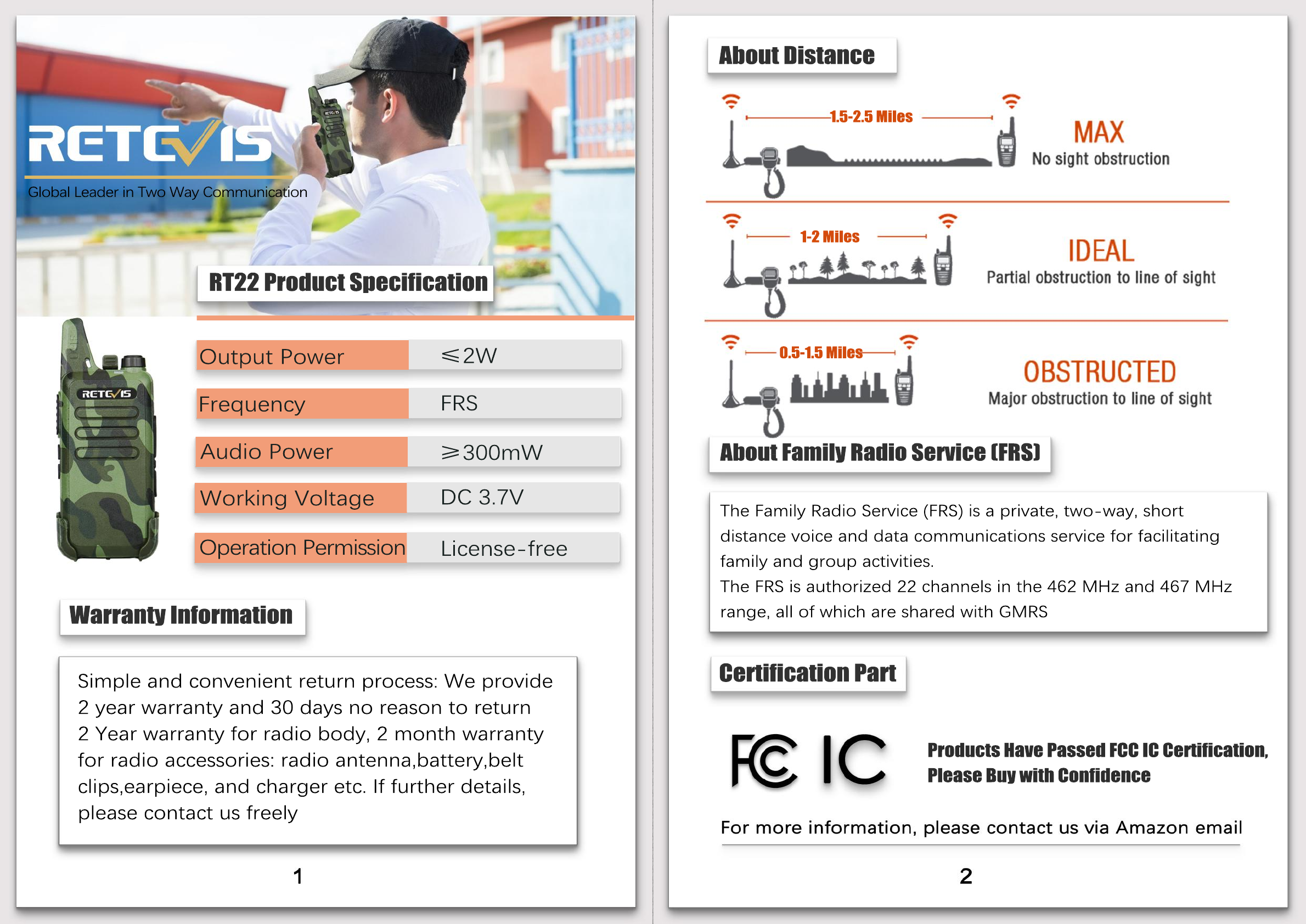 The FRS is authorized 22 channels in the 462 MHz and 467 MHz