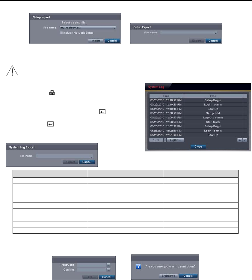 NOTE: Even after changing the DVR settings by importing saved settings, the time-related settings (Date/Time,