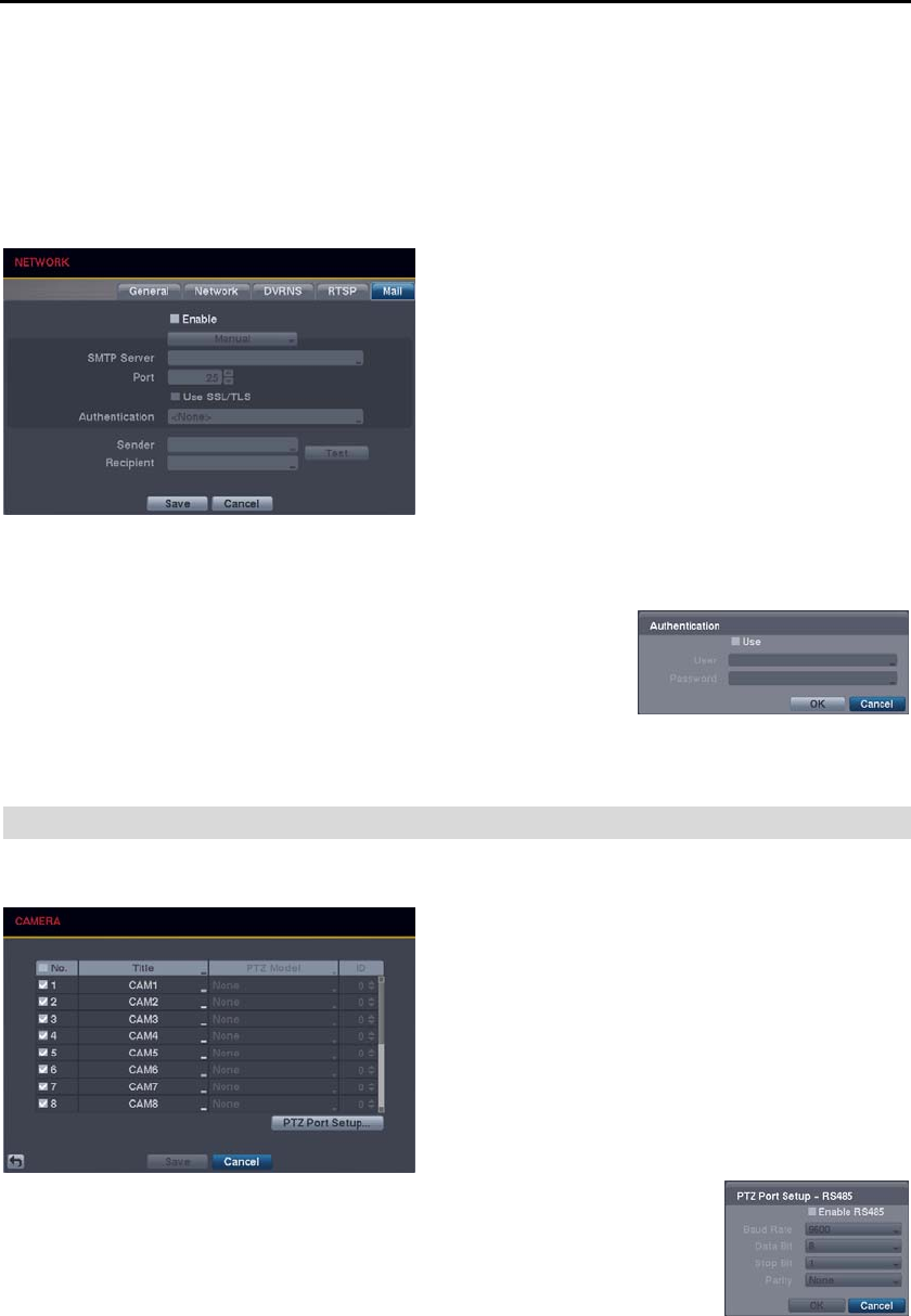 the DVR. Check the Enable RS485 box and set the port’s setting according to the PTZ