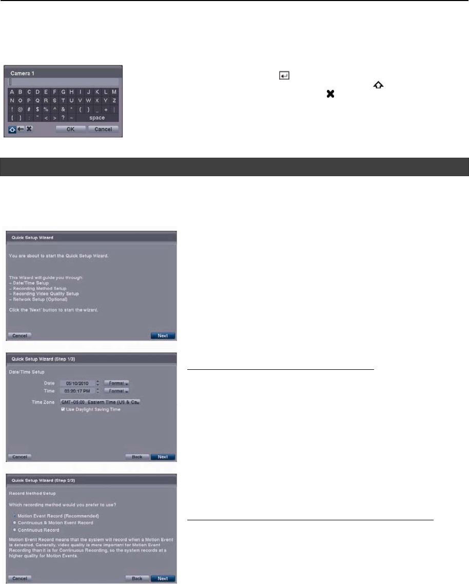 Al configurar la DVR, usted podrá insertar nombres y títulos. Cuando realice estas inserciones, un Teclado Virtual será exhibido.