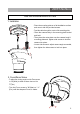 USER’S MANUAL INSTALLING & ADJUSTING 1. Installation - Place the mounting plate on a flat installation surface and mount with the provided screws. - Feed the cable through the center of the mounting plate. - Place the camera body in the mounting plate socket and hold. - Then place the outer plate over the camera body & mounting plate and tighten side screws to lock the camera into place. - Loosen side screws to adjust camera angle as needed, then tighten the side screws to lock into place. 2.