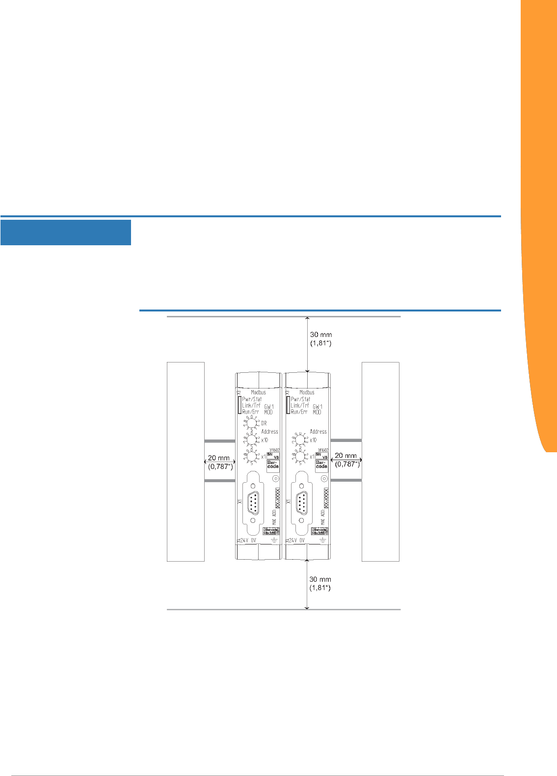 ◦ Install the DIN rail horizontally in the control cabinet according to the