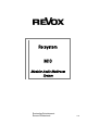 M10 Re:system GERMANY Revox GmbH, Am Krebsgraben 15, D-78048 VS-Villingen, Germany Phone +49 7721 8704 0, Fax +49 7721 8704 29 info@revox.de, www.revox.de SWITZERLAND Revox Schweiz AG, Wehntalerstrasse 190, CH-8105 Regensdorf, Switzerland Phone +41 44 871 66 11, Fax +41 44 871 66 19 info@revox.ch, www.revox.ch Central Service Revox GmbH, Am Krebsgraben 15, D-78048 VS-Villingen, Germany Phone +49 7721 8704 43, Fax +49 7721 8704 49 info@revox.de 39 Re:system M10 Operating Instructions / Part.No.: 10.30.