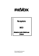 Re:system M10 GERMANY Revox GmbH, Am Krebsgraben 15, D-78048 VS-Villingen, Germany Phone +49 7721 8704 0, Fax +49 7721 8704 29 info@revox.de, www.revox.de SWITZERLAND Revox Schweiz AG, Wehntalerstrasse 190, CH-8105 Regensdorf, Switzerland Phone +41 44 871 66 11, Fax +41 44 871 66 19 info@revox.ch, www.revox.ch Central Service Revox GmbH, Am Krebsgraben 15, D-78048 VS-Villingen, Germany Phone +49 7721 8704 43, Fax +49 7721 8704 49 info@revox.de 33 Re:system M10 Operating Instructions / Part.No.: 10.30.