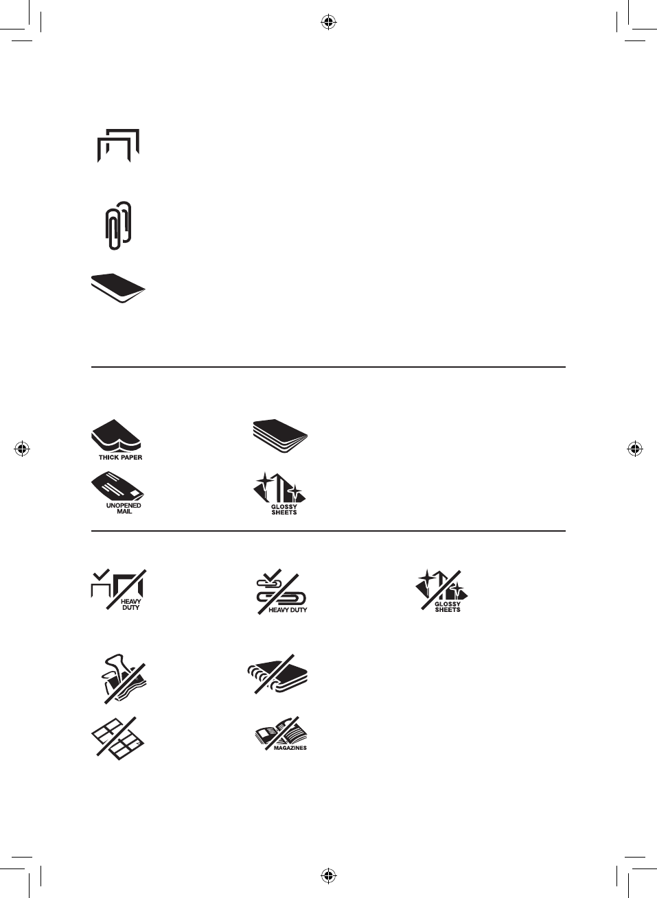• Papier ze zszywkami, do 25 mm od rogu