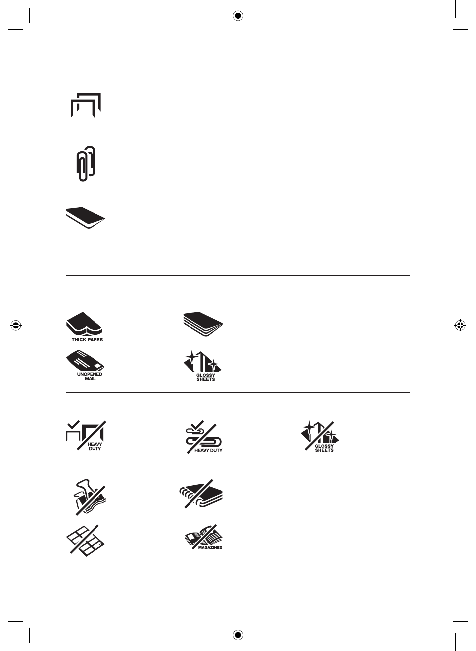 • Papíry spojené kancelářskými sponkami, do 25 mm od rohu