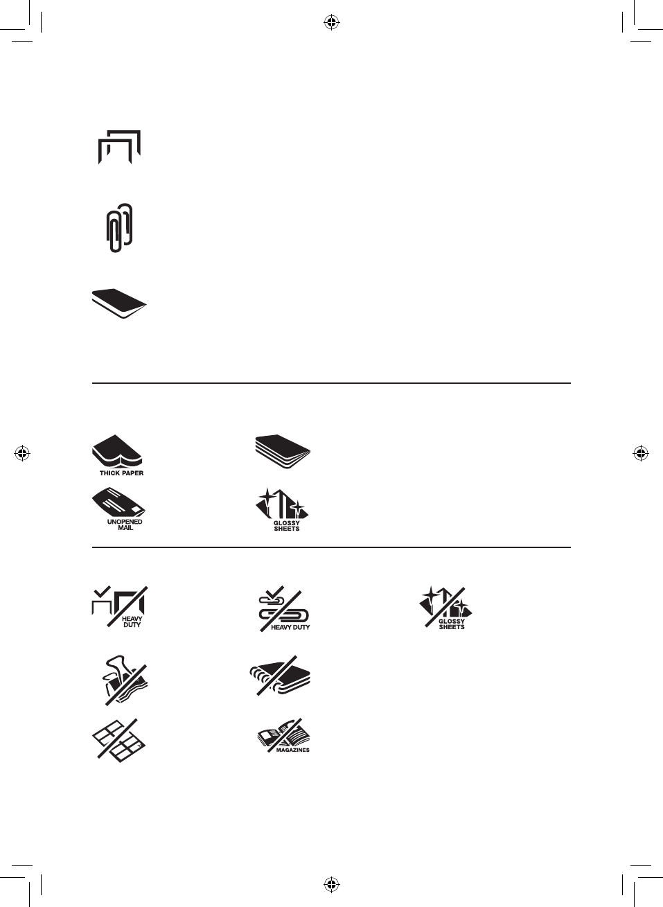 • Gemkapoccsal összefogott papír, max. 25 mm-re a papír sarkától