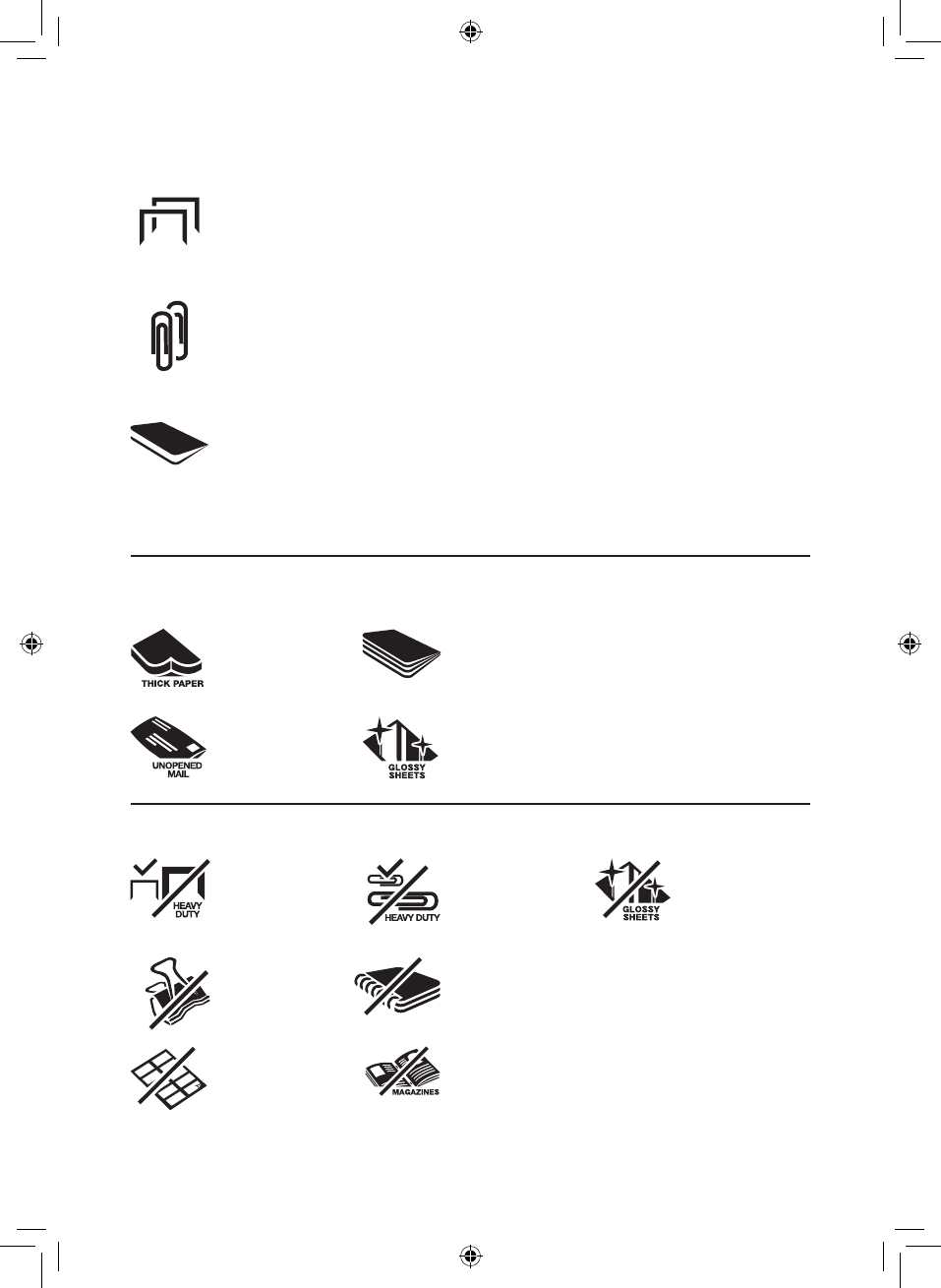 • Feuilles avec trombone, à 25 mm du coin au plus