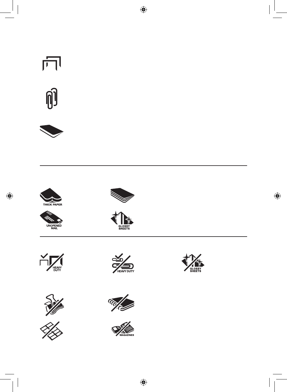 • Små/mellemstore (maks. ståltrådstykkelse = 0,9 mm) papirclips