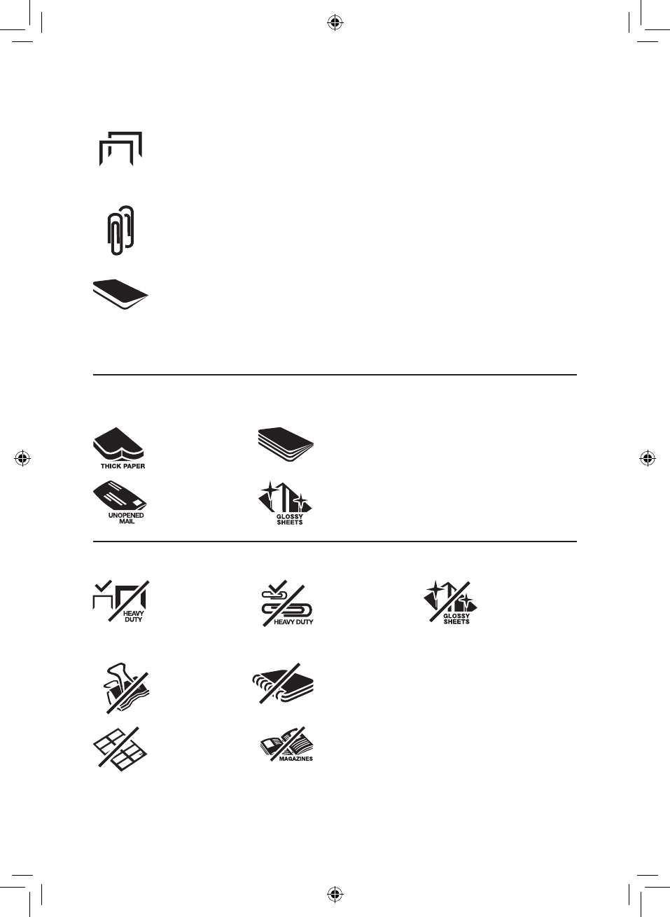 • Små/middels (maks. tykkelse = 0,9 mm) binders