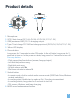 Product details 4 7 89.5 3 8 5 2 1 6 1. Microphone. 2. QC3.0 fast charge (DC 3.6-6.5V/3A, 6.5-9V/2A, 9-12V/1.5A). 3. USB (maximum 64G)/5V-1A charging output. 4. Type-C fast charge PD 18W fast charge protocol (DC5V/3A, 9V/2A/12V/1.5A). 5. Yellow LED display. 6. Phone button: Long press for 2 seconds to enter FM mode. In the off state, long press for 3 seconds to turn on. In the power on state, long press for 3 seconds to turn off. Five-way button: • Click pause/play/hands-free (answer/hang up/reject).