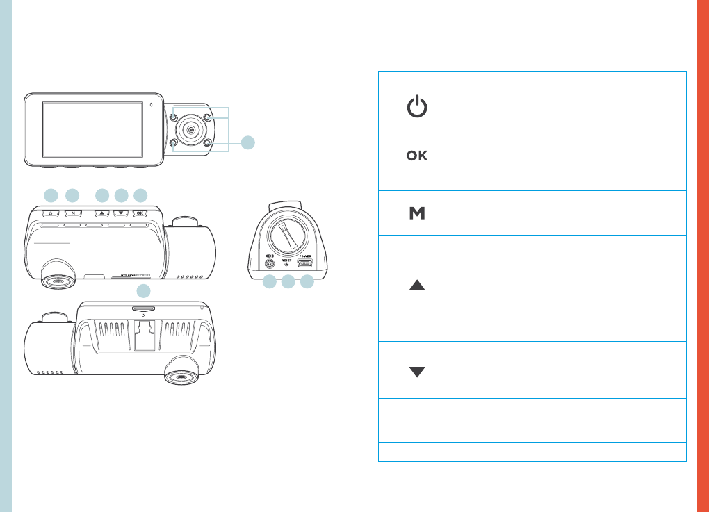 6. OK (Conrm) Button / Emergency Lock Button / Record Button
