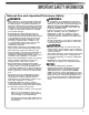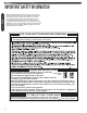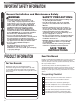 WARNING: If the information in these instructions is not followed exactly, a fire or explosion may result, causing death, personal injury, or property damage. For Your Safety! •D o not store or use gasoline or other flammable vapors and liquids in the vicinity of this or any other appliance. To do so may result in an explosion or fire. • Installation and service must be performed by a qualified installer, service agency, or the gas supplier.