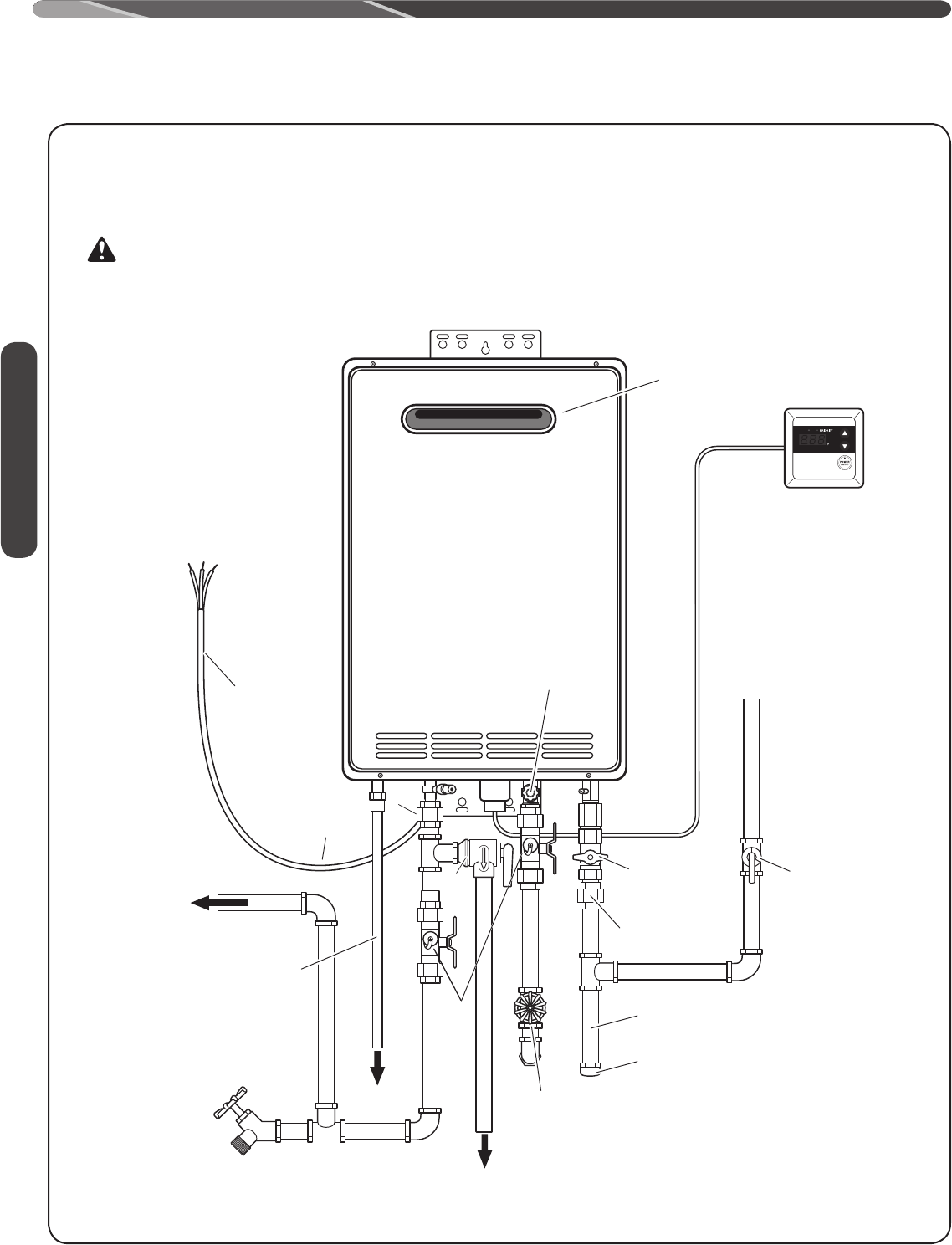 DO NOT install this water heater indoors or in a confined space. It is designed for outdoor installation only. Any other type of