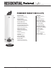 Residential Replacement Parts List All standing pilot models except direct vent and PowerVent NATURAL OR LP GAS (NON-FVIR) Units manufactured prior to July, 2003 Ref. No. Part Description Qty. Req. 1. Thermostat 1 2. 3. 4. Pilot Supply Tube Thermocouple Burner Supply Tube 1 1 5. Burner Orifice 6. Burner 7. 7A. 8. 9. Pilot Burner Pilot Burner Drain Valve Shroud Drain Valve 1 10. 11. 12. Jacket Door Inner Door Flue Baffle 1 1 1 12A. 13. Flue Baffle Hanger Anode Rod 1 1 14. 15. 16. 17.
