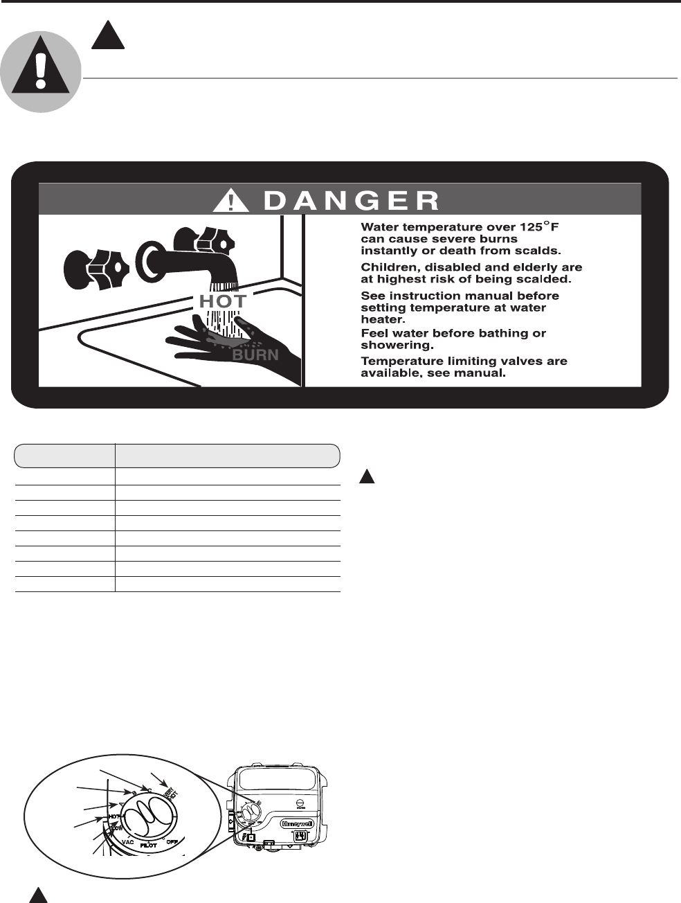 temperature setting of a water heater’s gas control. Water temperatures above 125°F