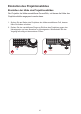 Leinwand auf. Der Projektor (mit Standardobjektiv) muss mindesntes 0,9 m