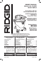 Ce produit est accompagné d’une politique de satisfaction de 90 jours ainsi que d’une garantie à vie limitée. Pour plus d’information sur la garantie et la politique, rendez-vous à RIDGID.com/VacWarranty ou appelez le 1-800-4-RIDGID. www.RIDGID.