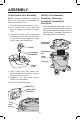 ENSAMBLAJE Ensamblaje de las ruedecillas/ pies para ruedecilla Ensamblaje de la aspiradora para mojado/seco NOTA: Retire el ensamblaje del cabezal del motor del tambor para polvo antes de ensamblar las ruedecillas y los pies de ruedecilla. 1. Ponga el tambor para polvo en posición invertida sobre el piso. 2. Coloque un pie de ruedecilla en el piso. Inserte el vástago de una ruedecilla en el receptáculo del pie de ruedecilla. 3.