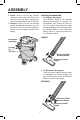 OPERATION Vacuuming Dry Materials Vacuuming Liquids 1. The Filter must always be correctly installed to avoid leaks and possible Vac damage. 1. Vacuuming up small amounts of liquid (less than 2” (5 cm) collected in Dust Drum) does not require Filter removal. 2. To maintain peak performance when vacuuming fine dust, clean the Drum and Filter regularily. 2.