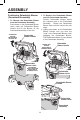FUNCIONAMIENTO Recogida de materiales secos con la aspiradora Recogida de líquidos con la aspiradora 1. El filtro siempre debe estar instalado correctamente para evitar fugas y posibles daños a la aspiradora. 1. La aspiración de pequeñas cantidades de líquido (menos de 2 pulgadas (5 cm) recogidas en el tambor para polvo) no requiere retirar el filtro. 2. Para mantener un rendimiento máximo cuando se aspire polvo fino, limpie el tambor y el filtro con regularidad. 2.