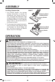 OPERATION Emptying the Dust Drum Vacuuming Liquids 1. Vacuuming up small amounts of liquid (less than 2” (5 cm) collected in Dust Drum) does not require Filter removal. ! To reduce the risk of injury from accidental starting, unplug power cord before emptying the drum. 2. When larger amounts of liquid are to be picked up, remove the Filter, but not the Filter Cage or Float, to prevent the Filter from becoming saturated with liquid.