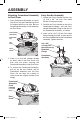 FUNCIONAMIENTO Vaciado del tambor Recogida de líquidos con la aspiradora ADVERTENCIA: 1. La aspiración de pequeñas cantidades de líquido (menos de 2 pulgadas (5 cm) recogidas en el tambor para polvo) no requiere retirar el filtro. Para reducir el riesgo de lesiones por causa de un arranque accidental, desenchufe el cable de alimentación antes de vaciar el tambor. 2.