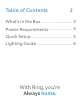 Table of Contents 2 What’s in the Box ............................... 3 Power Requirements ....................... 4 Quick Setup ......................................... 5 Lighting Guide ................................... 6 With Ring, you’re Always home.