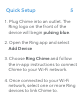 Quick Setup 5 1. Plug Chime into an outlet. The Ring logo on the front of the device will begin pulsing blue. 2. Open the Ring app and select Add Device 3. Choose Ring Chime and follow the in-app instructions to connect Chime to your Wi-Fi network. 4. Once connected to your Wi-Fi network, select one or more Ring devices to link Chime to.