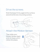 Drive the screws. Hold the base firmly against the surface and drive the two mounting screws. Attach the Motion Sensor. Then slide your Motion Sensor back onto its base until it clicks into place.