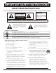 Page 4 IMPORTANT SAFETY INSTRUCTIONS SAVE THESE INSTRUCTIONS INSTRUCTIONS PERTAINING TO A RISK OF FIRE, ELECTRIC SHOCK, OR INJURY TO PERSONS WARNING CAUTION TO REDUCE THE RISK OF FIRE OR ELECTRIC SHOCK, DO NOT EXPOSE THIS PRODUCT TO RAIN OR MOISTURE. RISK OF ELECTRIC SHOCK DO NOT OPEN AVIS : RISQUE DE CHOC ELECTRIQUE - NE PAS OUVRIR. TO REDUCE THE RISK OF ELECTRIC SHOCK, DO NOT REMOVE COVER (OR BACK). NO USER-SERVICEABLE PARTS INSIDE. REFER SERVICING TO QUALIFIED SERVICE PERSONNEL.