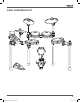 ASSEMBLING YOUR KIT ATTACHING THE CYMBAL PADS 1. Insert each cymbal arm into the rack clamp. 2. Insert short hi-hat arm on the left-side arm’s cymbal clamp. 3. Remove wing nut from cymbal tilter. Place cymbal pad on tilter assembly. 4. Re-attach washer and wing nut. Tighten wing nut. ATTACHING THE DRUM MODULE AND DRUMS 1. Loosen wing screws on drum rack. 2. Place drum module into drum clamp. 3. Tighten wing screw to secure module. 4. Place drums into mounting rods and tighten with wing screws.